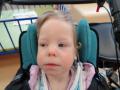 Валентина реагирует на резкие, громкие звуки поворотом головы. Девочка самостоятельно сидит,